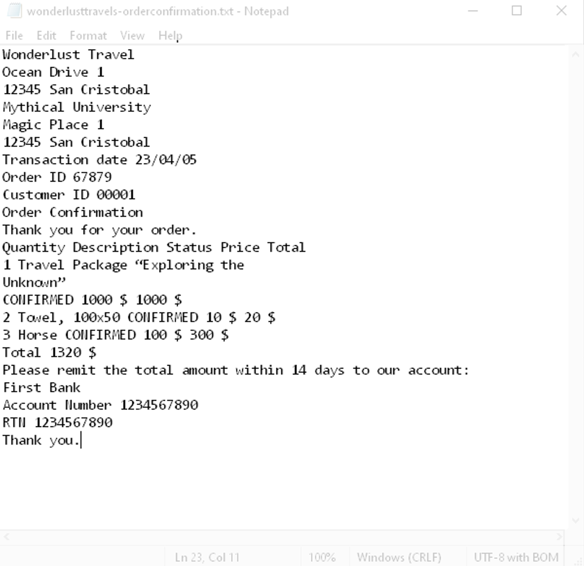 As you can see in the image of the order confirmation letter, the order ID is always listed in a table next to the entry 'Order ID'. You can use this information to implement the workflow that contains the following steps: